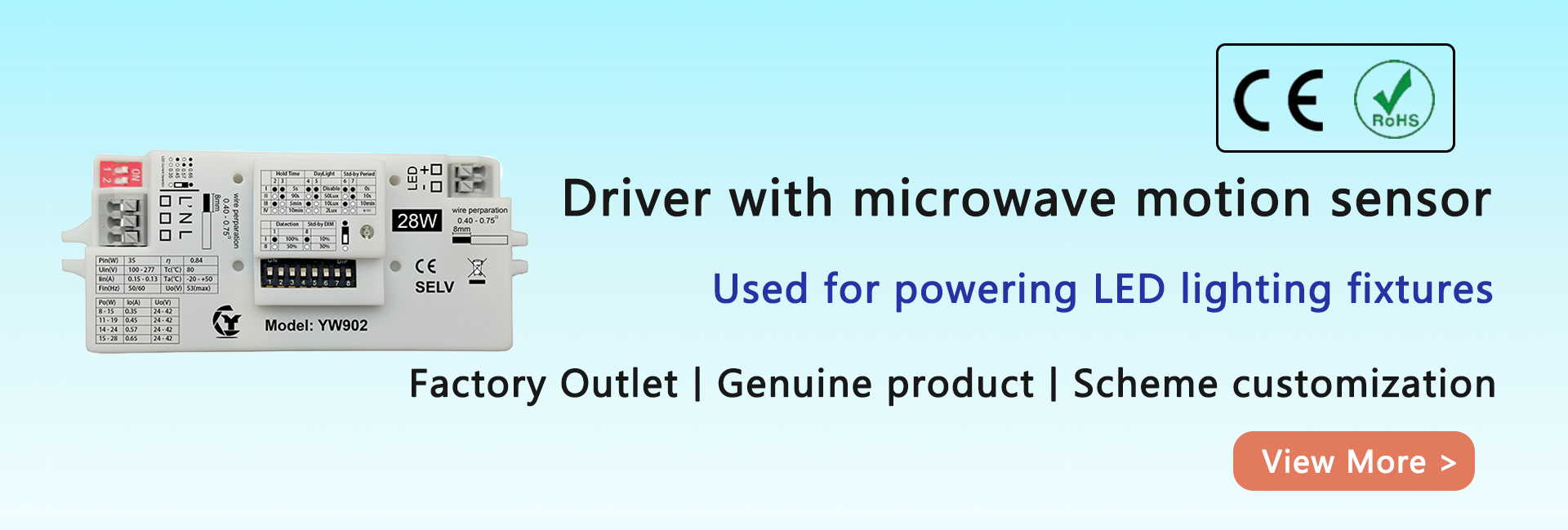מוצרים עיקרייםחיישן תנועה, חיישן, חיישן מכ "ם, נהג הוביל, חירום הוביל